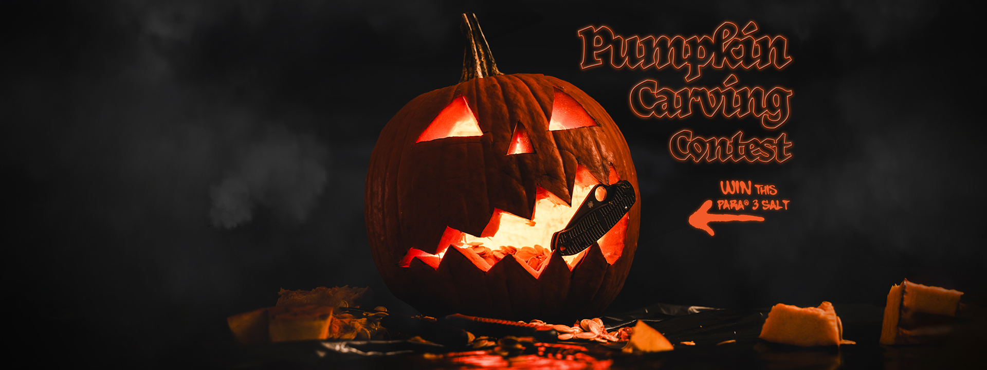 Celebrate the season with Spyderco. Share a clear photo of your carved pumpkin, add your details, and list the Spyderco knives you used. One winner will take home a Para 3 Salt™ configured with black Caribbean G-10 scales and a black CPM® MagnaCut® blade.